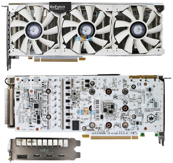Выше описанное ядро соединяется по 256-битной шине с видеопамятью типа GDDR5 объемом 2048 Мбайт. Частотная формула составляет 1150/6008 МГц для ядра/памяти соответственно. За охлаждение отвечает система охлаждения, состоящая из теплотрубок, алюминиевого радиатора и трех белых вентиляторов. Вся «начинка» держится на белой печатной плате с интерфейсом PCI Express 3.0 x16. Тыльная сторона видеокарты содержит порт DisplayPort и три видеовыхода Mini HDMI. Новинка совместима с DirectX 11 и обладает поддержкой фирменных технологий NVIDIA, включая FXAA, TXAA, Adaptive VSync, 3D Vision, 3D Vision Surround, CUDA, PhysX и SLI.