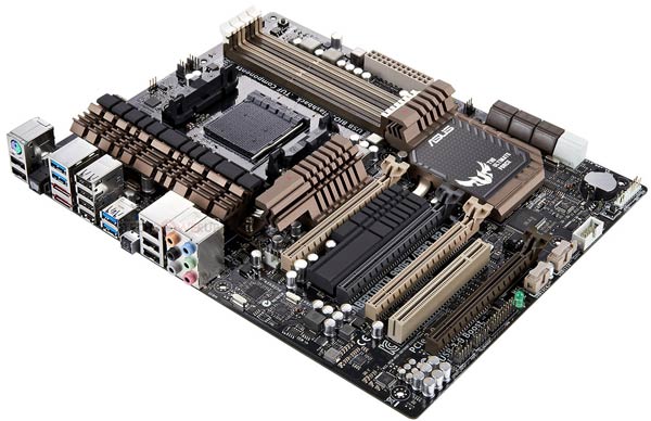 Новинка обладает набором системной логики AMD 990FX и SB950, контактной площадкой AM3+ а, подсистема питания построена по формуле 8+2 с цифровым управлением. Отличительной особенностью данной платы являет наличие трех слотов PCI Express 3.0 x16, с возможность построить конфигурации AMD CrossFireX и NVIDIA SLI. Имеются так же слоты PCI и PCI Express 2.0 х16.